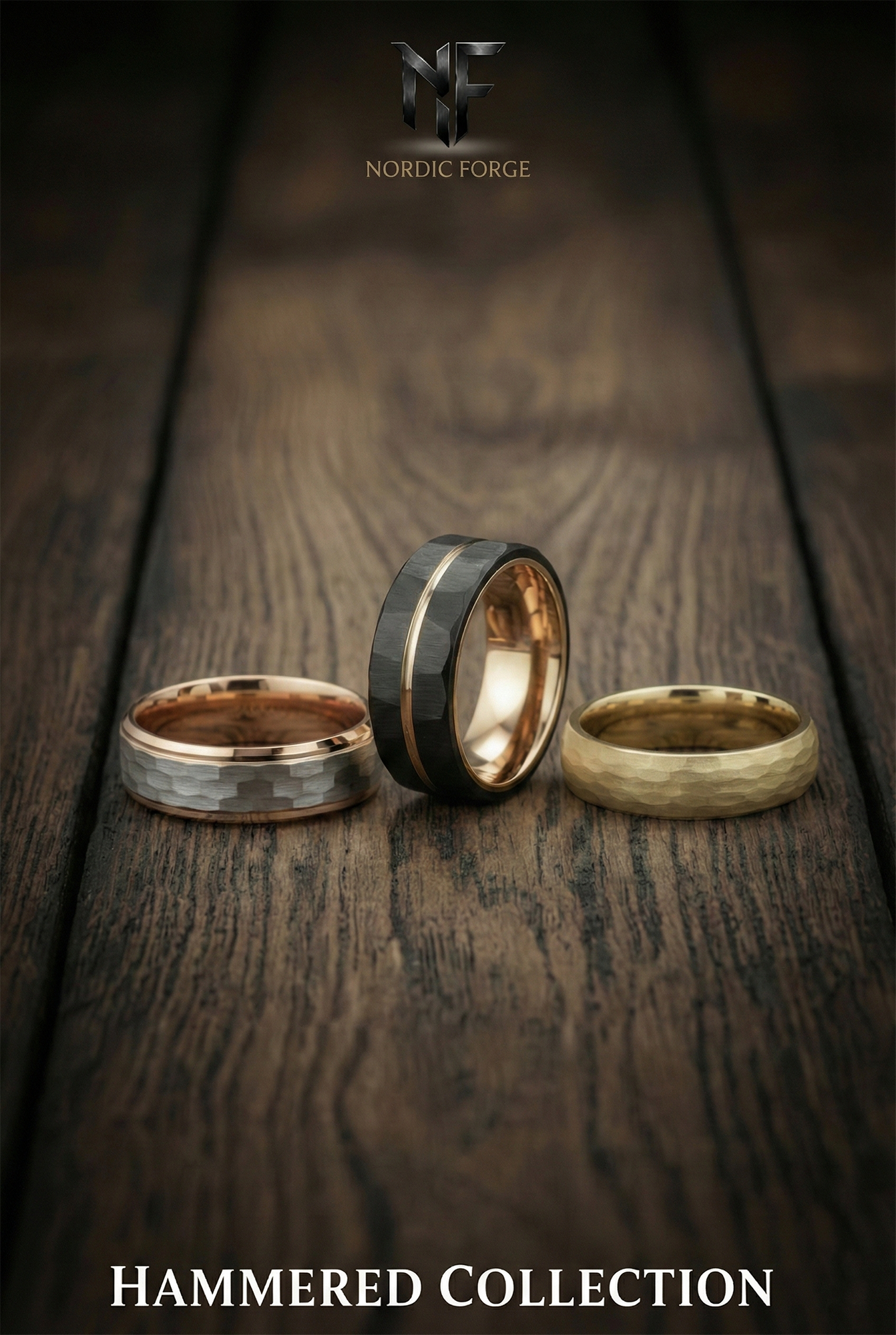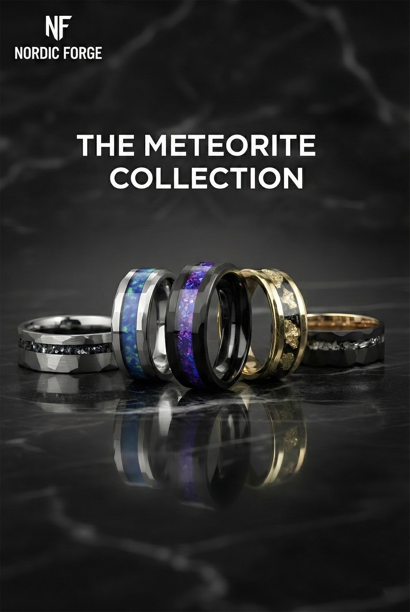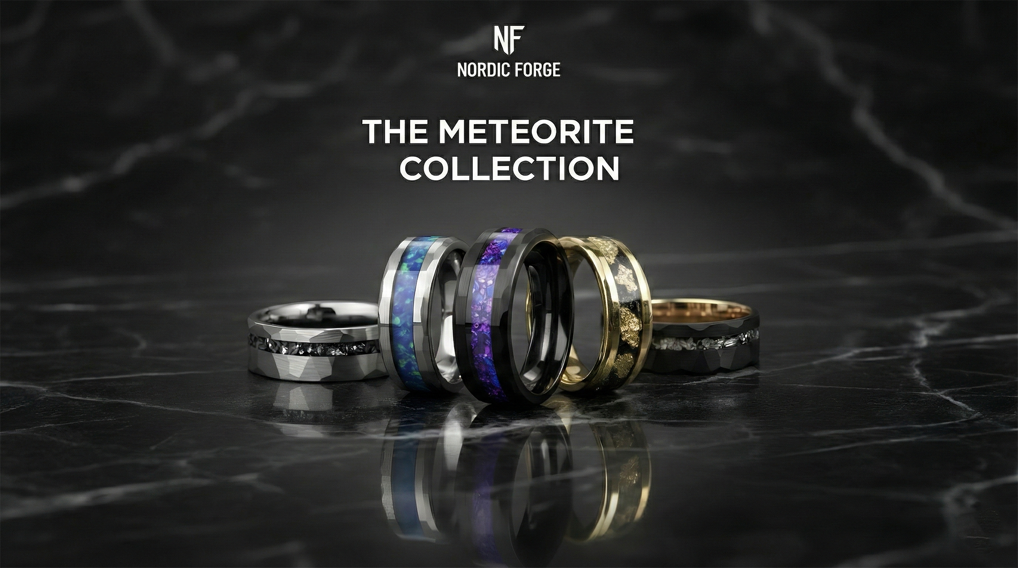 Black Tungsten Meteorite Ring with Gold Leaf Inlay – Faceted Men’s Wedding Band – Unique Space Inspired Jewelry